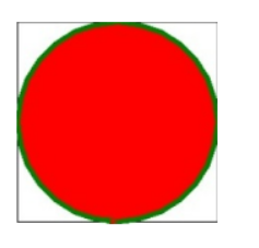 在屏幕上绘制正方形及其内接圆形。其中,正方形左下角坐标为(0,0),边长为黑色,长度200像素,线宽1像素,内切圆为绿色,线宽5像素,内部以红色填充。